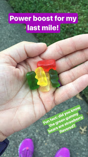 It may sound goofy, but gummy bears (specifically Haribo!) are my favorite running fuel! I choose Haribo brand specifically because they aren't too mushy and don't tend to melt in your running belt/hydration backpack during a run in warmer weather. Gummy bears have just enough sugar to give me energy in between fueling up with gels. I like to reward myself at every mile marker by eating a few gummy bears. It gives me something to look forward to while also giving me energy. I eat gummy bears during most of my runs but I'll limit my consumption during a shorter run because I don't want to overdo it with sugar. These may not work for everyone, so once again, figure out what works best for you! I've heard that some people will eat Starburst or other sugary candies during their runs.