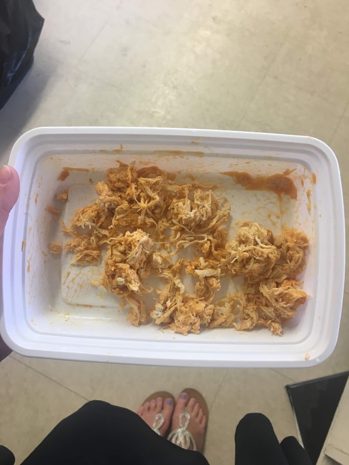 I promise it’s more appetizing than it looks! This is the shredded chicken mixed with buffalo sauce. |